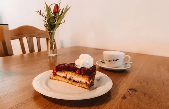 Mach eine gemütliche Pause am Nachmittag auf dem Bergschreinerhof und genieße hausgemachte Kuchen und Torten – frisch gebacken nach Familienrezept. Dazu servieren wir sagenhaft guten Kaffee und beliebte Kaffeespezialitäten, perfekt für Genießer und Familien. Entspanne in ruhiger, idyllischer Lage und erlebe echte bayrische Gastlichkeit.