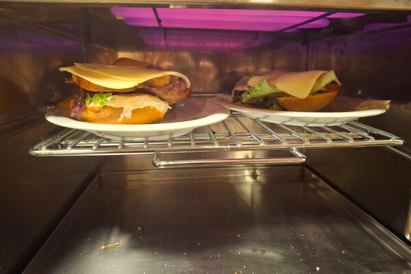 Du belegst Deinen Burger, gibst ihn kurz weiter und unser Küchenteam sorgt dafür, dass der Käse in wenigen Sekunden perfekt zerläuft. Danach bekommst Du Deinen Burger direkt zurück – heiß, saftig und bereit zum Genießen.
