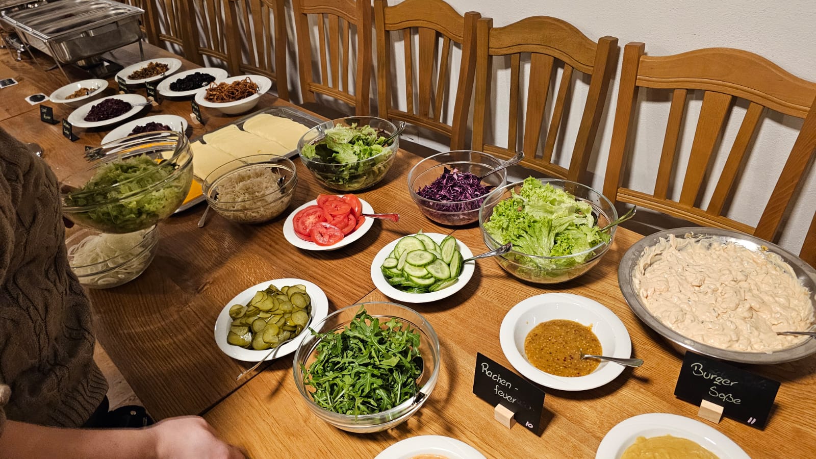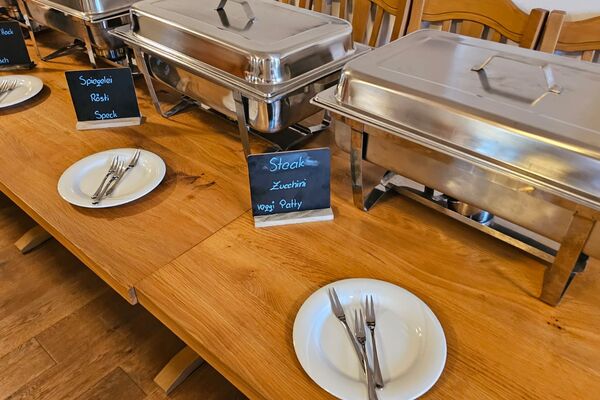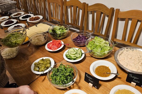 Ergänzt wird alles durch regionale, knackige Salate und frisches Gemüse, liebevoll vorbereitet.