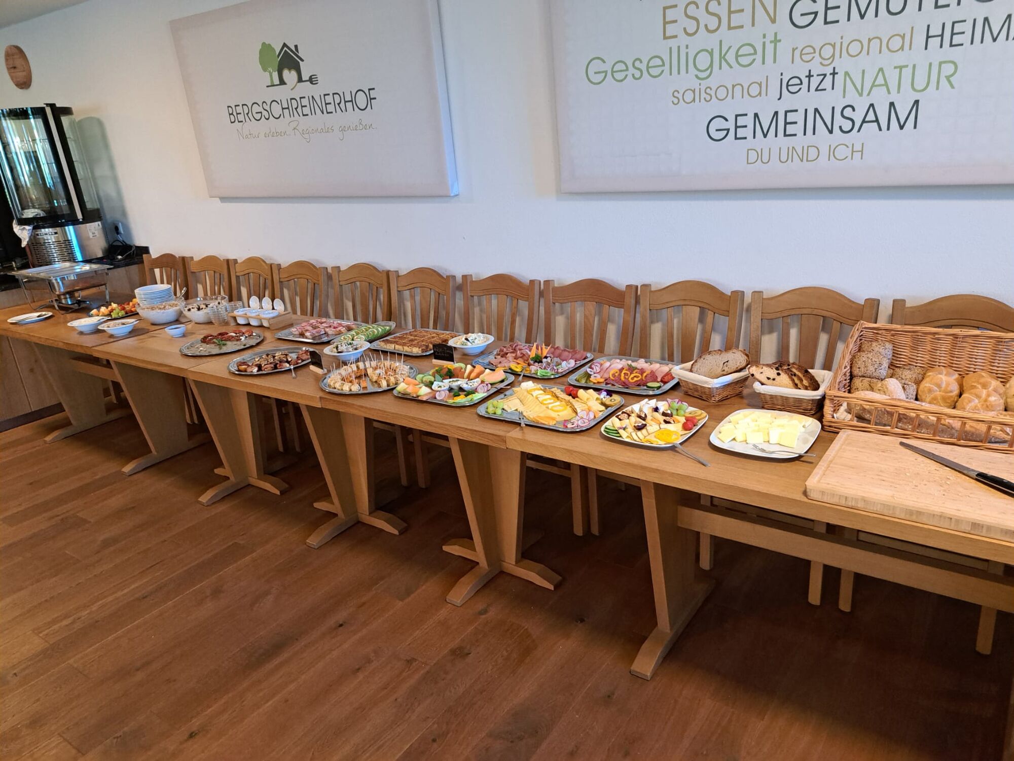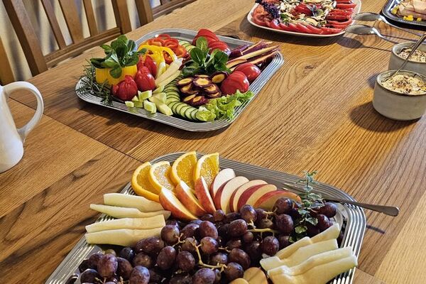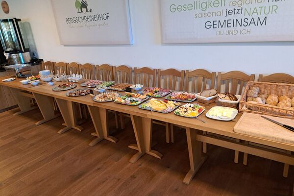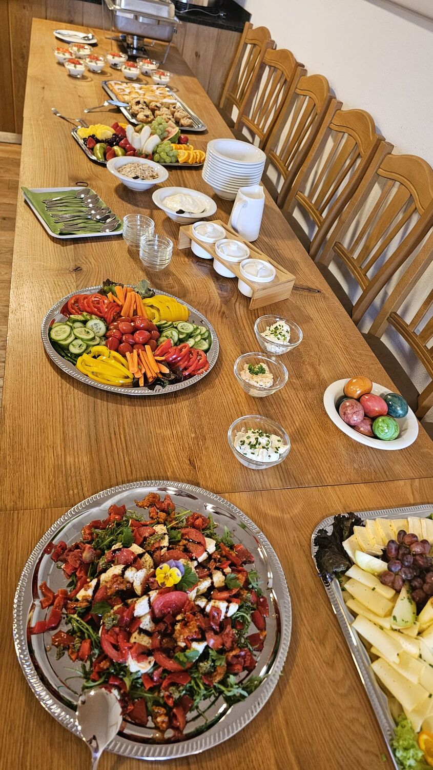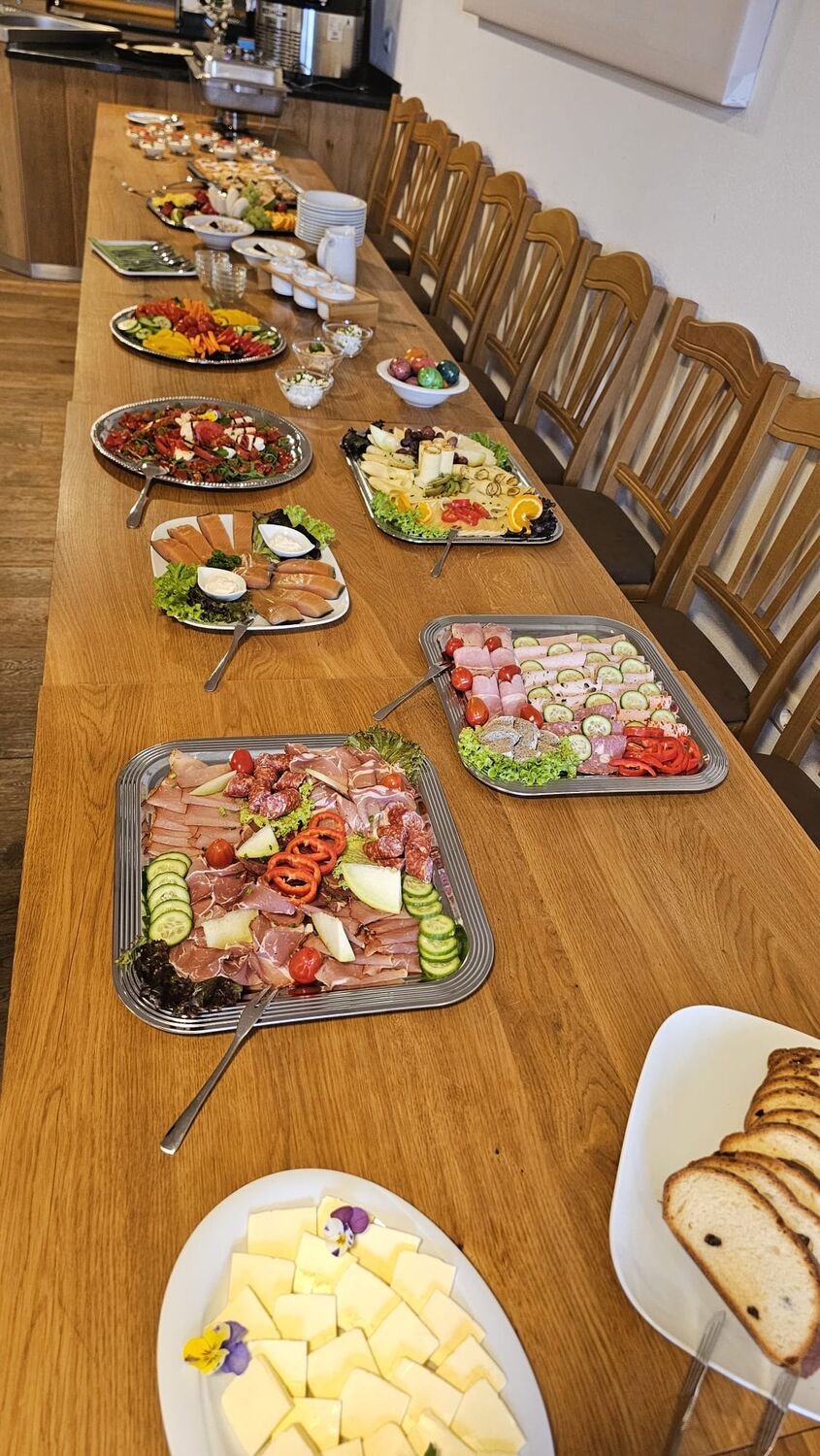 Ergänzt wird alles durch frisches, saisonales Obst und Gemüse, das teilweise direkt aus unserem eigenen Garten stammt. Für besondere Genussmomente sorgen hausgemachte Aufstriche, verschiedene Cerealien, cremiger Joghurt und süße Highlights – ideal zum Kombinieren, Probieren und Nachholen.