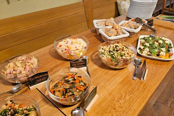 Dazu warten saisonales Gemüse in verschiedenen Variationen und frische, abwechslungsreiche Salate, die perfekt zu Gegrilltem passen.