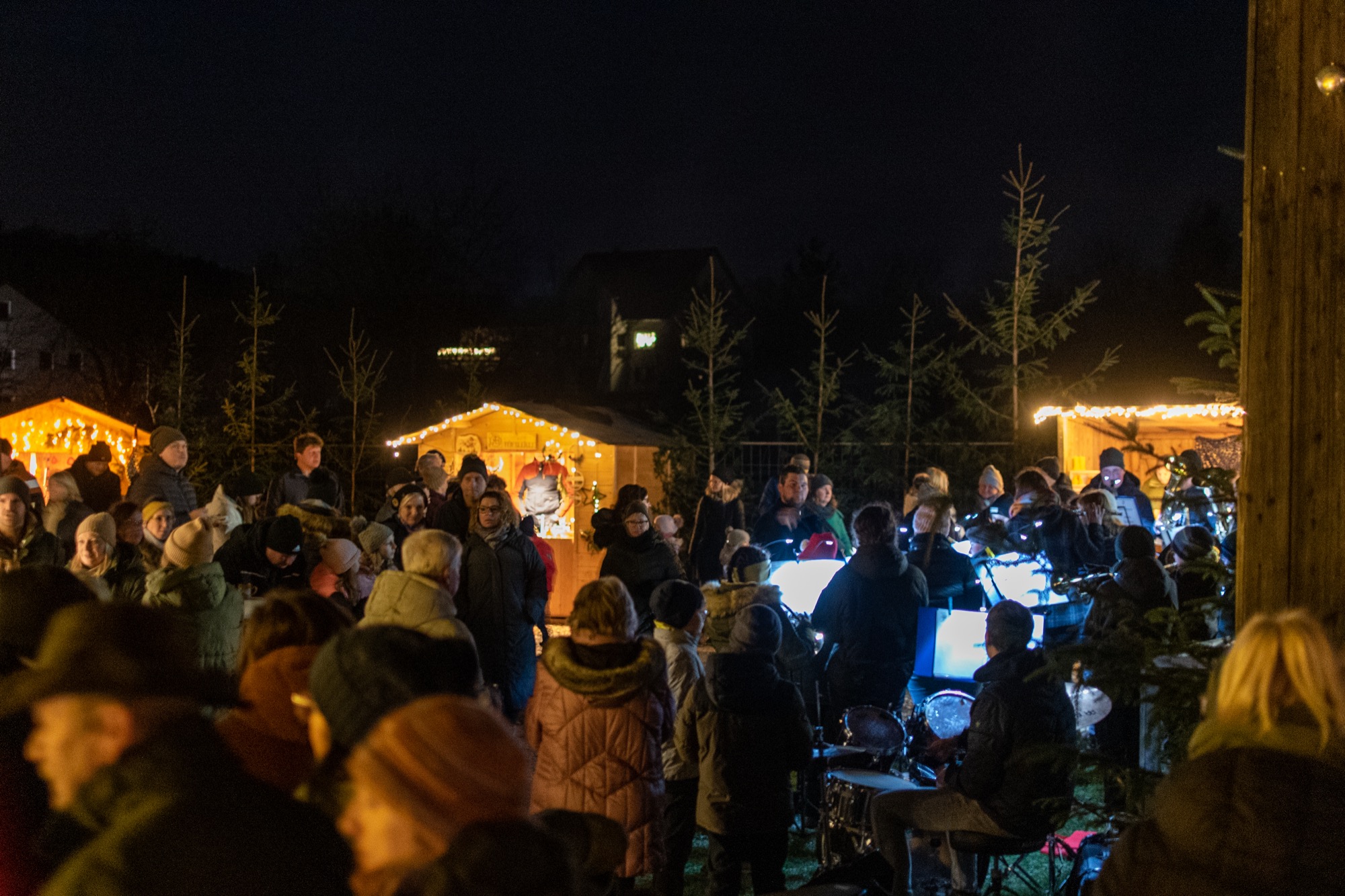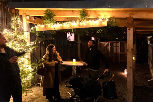 Warme Feuertonnen und viele kleine Lichter schaffen eine stimmungsvolle, weihnachtliche Atmosphäre.