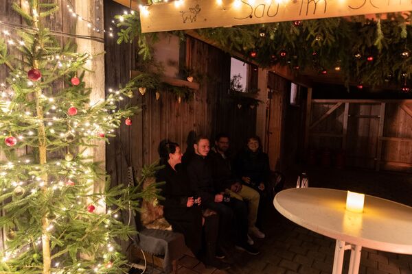 Klassiker wie Punsch und Glühwein wärmen von innen, Bratwürste und Schnitzelsemmeln vom hofeigenen Schwein sorgen für herzhaften Genuss.